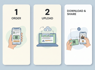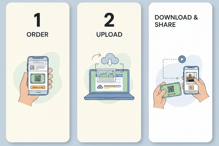 Upload your favorite moments, pick a soundtrack, and get your unique QR code instantly.